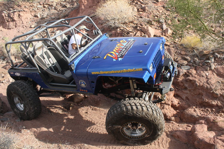 Dave's Customs Unlimited shock towers and universal shock hoops are designed to fit Jeep CJ, YJ, TJ, and also Bronco's and Toyota's! The rear outboard shock towers and shock hoop kits are an easy way to install long travel shocks or coilovers when building your custom suspension.